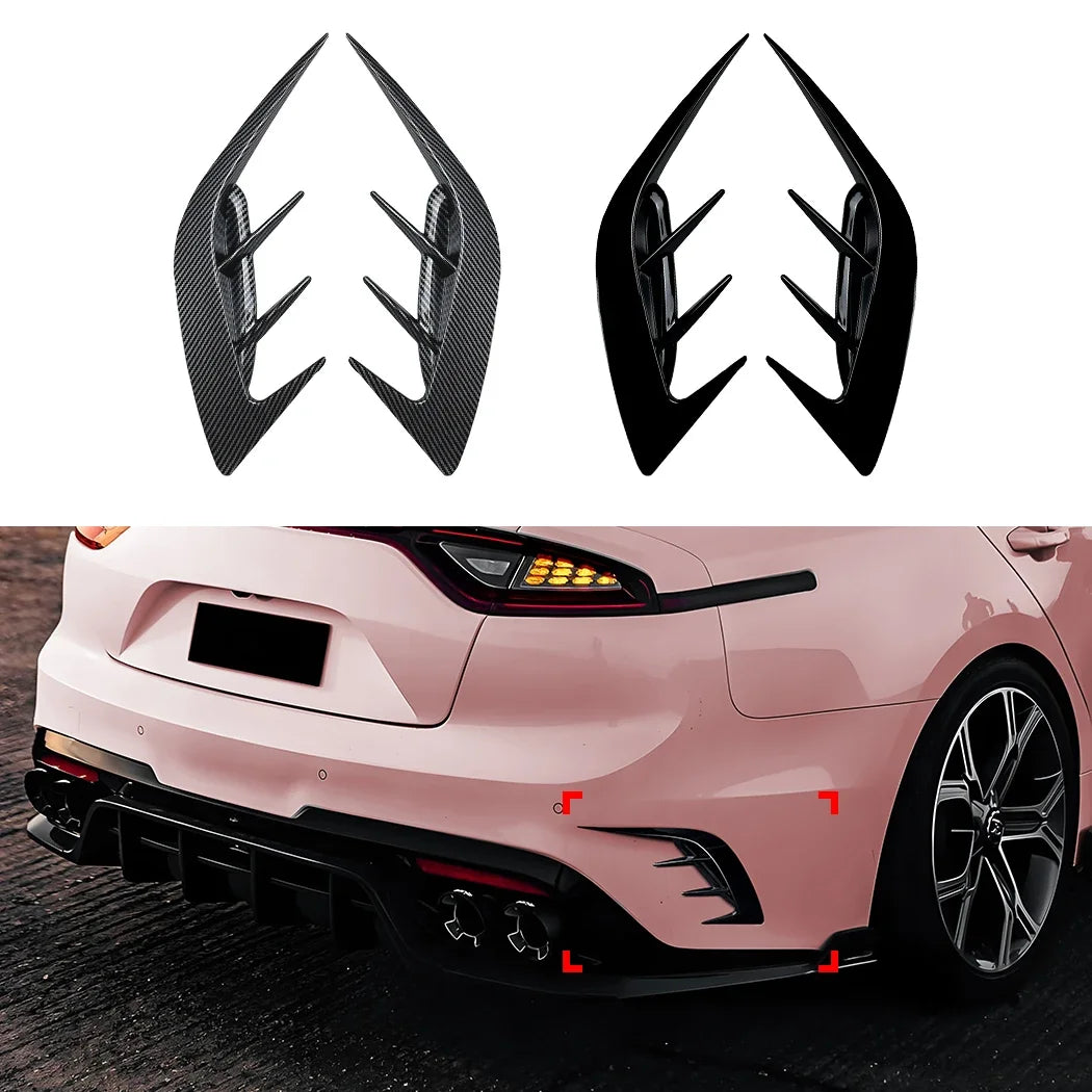 These 2-piece rear canard covers blend durable ABS construction with a sleek gloss black and carbon fiber style finish. Designed to enhance your vehicle’s aerodynamics and aggressive appearance, they provide a lightweight upgrade that is easy to install and resistant to everyday wear. Engineered for precision fitment, they offer both functional style and lasting performance at the rear of your vehicle.