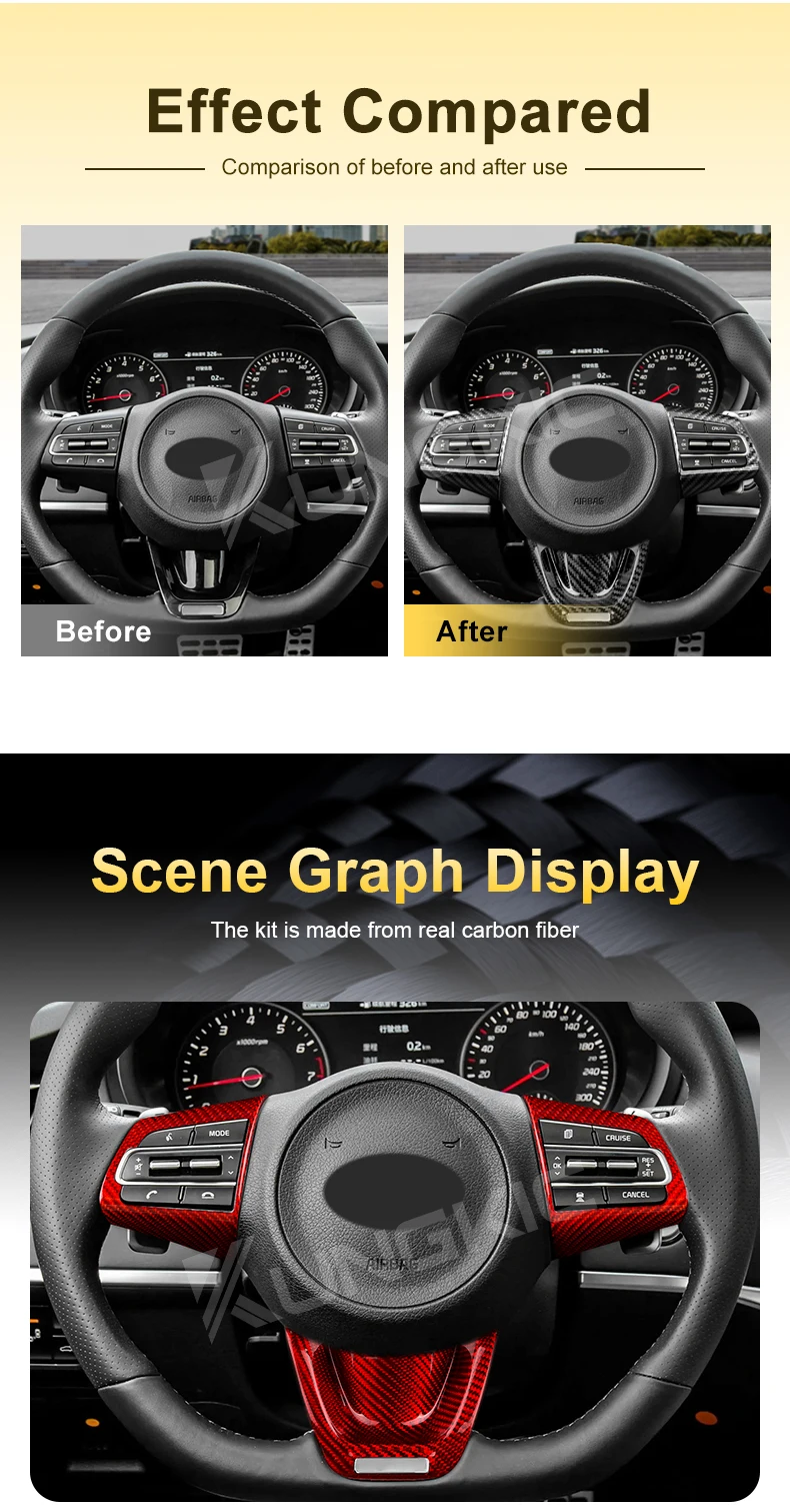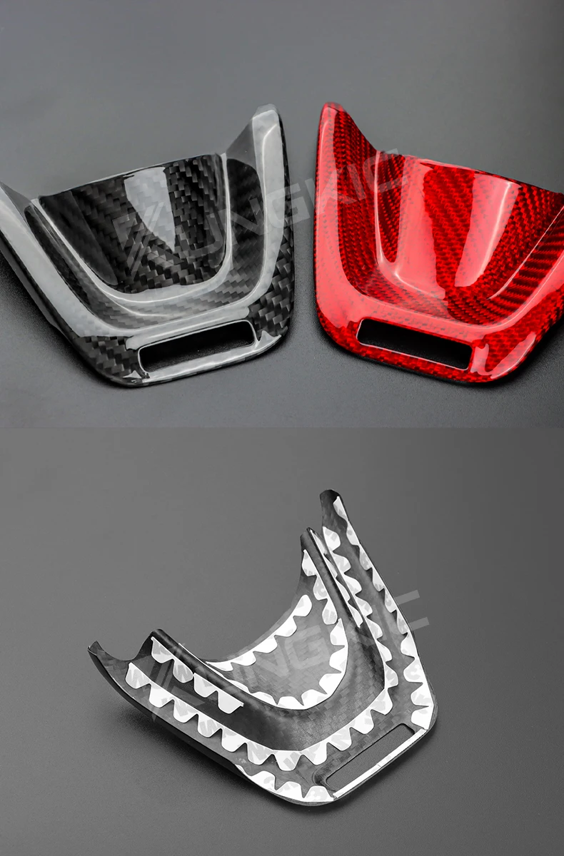 Elevate your steering wheel with this real hard carbon fiber cover available in red or black. Crafted for durability and lightweight performance, it delivers a precise fit that enhances grip and adds a sophisticated, sporty look to your vehicle’s interior. This trim combines rugged protection with refined style, ensuring long-lasting quality and a professional finish.